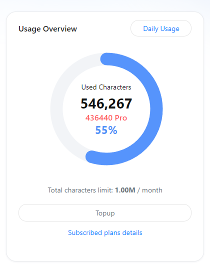 On the 'Subscription' page, you’ll see your character usage for the current plan in the 'Usage Overview' section.